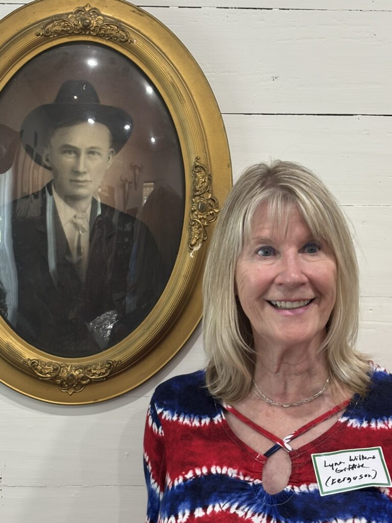 The reunion ended with a visit to James and Isabella Wood’s home, where Jerry and Jana now live. The shade and breeze welcomed us, and family gathered to cool off with cold drinks and light appetizers. We relaxed together, shared stories, and listened once more to the bagpipes. Some of us realized that genetics are powerful. Look how much Lynn looks like the portrait of her ancestor, Robert Ewin Ferguson.